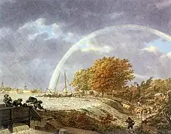 Jacob Cats, an excellent Dutch draughtsman, who also etched and painted, was born at Altona in 1741 as the son of a Mennonite bookseller who had to flee Amsterdam because of a controversial publication. The family returned to Amsterdam after a few years. He studied under Abraham Starre and Pieter Louw. Initially he worked for the wallpaintings firm of Troost van Groenendoelen, later he established his own firm where he collaborated with i.a. Egbert van Drielst. As the market for wallpapers diminished, and his fame as a draughtsman rose, he started to focus uniquely on the latter. He was celebrated for drawing townscapes and landscapes with realistically rendered persons and animals, his works having a distinct originality, and being marked by a poetical rendering of the features of nature, as well as by careful manipulation. He also created a good feeling of depth in his work. They are often suggestive of seventeenth-century artists such as Adriaan van de Velde and of Berchem, and are highly valued. He also copied some paintings on a smaller scale, and has left some etchings. He died at Amsterdam in 1799.