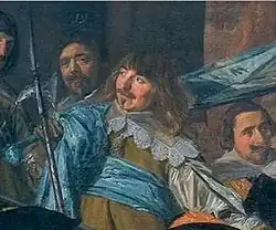 Portrait of Jacob Druyvesteyn standing between Frans Hals and Hendrik Pot, detail of schutterstuk from 1639