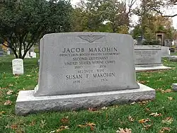 Jacob Makohin died on January 13, 1956, and was buried in Arlington National Cemetery.[2] His wife Susan was buried with him after her death in 1976.[2]