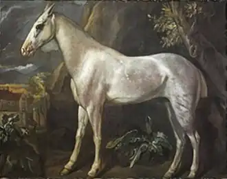 - ^ a b c d e Jacob Peter Gowy, The Marquess of Worcester's dappled grey stallion, with Worcester House beyond at Christie's