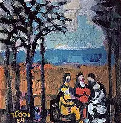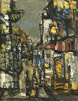 Two years later, Wexler and his wife relocated to Haifa, and later separated. In Haifa, Wexler befriended painters Zvi Meirowitch, Menachem Shemi, and Avraham Naton, and participated in several group exhibitions. During this period, Wexler was introduced to the work of French painter Georges Rouault, and was influenced by it. However, it was only in 1943, during a visit to the Yemin Moshe neighborhood in Jerusalem, that a breakthrough occurred in his work. "What I found there was a kind of shape and structure. There’s a kind of picturesqueness there. […] It was like a deep breath, suddenly there was air… Now I was painting like a madman – hundreds of paintings."[3] In 1944, Wexler joined the Israel Painters and Sculptors Association, and began showing his work in the association's exhibitions. His first solo exhibition in Palestine opened in 1946 at the Jonas Gallery in Jerusalem. "The subjects of Mr. Wechsler's paintings are mostly taken from the Palestinian landscape, especially from the North: Haifa, Acre, and Safed. But the subjects are just so many labels; neither the shapes nor colors are more than vaguely indicative of the real subjects. These pictures are a kind of symphonic transcription of reality into spheres of artistic imagination. Strong and independent enough not to follow any of the 'isms.' A great but disciplined passion for his work is manifest in Mr. Wechsler's paintings."[4]