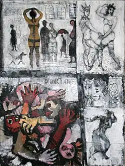 Wexler was asked to create engagé art, but found it difficult to cooperate with the demands of the movement. "I don’t have an ideology. Painting is not an ideology. In a way, if you want to say something beyond the painting, when you want to convey a message of some kind, it falsifies the painting – unless it is very human and really touches me."[2]