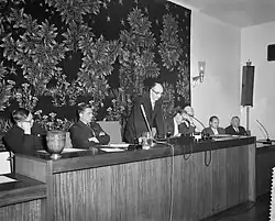 In the late 1950s Haccoû was on the short list for the new Rector of the University of Amsterdam, but this position was granted to the former minister Joris in 't Veld.[5] Haccou did get appointed president the National productivity center for fishing companies in 1959 (see image), one of his many other positions.