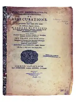 A Latin dissertation at the University of Duisburg in 1711, on the nature of God, and at least nominally against Benedictus de Spinoza and Frederik van Leenhof, raised some questions about his orthodoxy. In 1717 he was a candidate for a chair at the University of Groningen, and was opposed by the theologian Antonius Driessen. Once he was given the chair, Wittichius found that Driessen continued to campaign against him, using an unauthorized Dutch translation of his Duisburg dissertation (anonymous but from the circle of Ruardus Andala); and his links to de Volder. Taco Hajo van den Honert of the University of Leiden moved in to defend Wittichius, and in the end he accepted a chair at Leiden instead. Leiden city and university now resisted outside pressure from Rotterdam in particular. Johann Franz Buddeus intervened, getting the Jena theology faculty to assert that the views of Wittichius were close to those of Spinoza and Abraham Joannes Cuffeler. Wittichius was comprehensively attacked in a pamphlet by Jacobus Leydekker in 1719. His position became a matter of wide discussion in the United Provinces; he defended himself by analogy with Johannes Bredenburg, and arguing that Cartesianism was effective against Spinozism.[2][3]