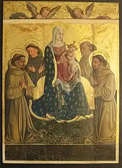 Probably his most ambitious work is the detached fresco decoration of the vault of the church of Santa Caterina della Stelletta of Spoleto, which is now on display in the Museum of Fine Arts of Budapest. This includes the six-and-a-half-meter high figure of the Christ Blessing, and the busts of the Four Evangelists on a similar scale.
