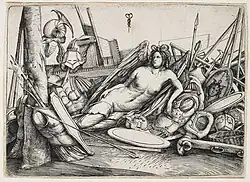 Victory Reclining Amid Trophies, engraving, c. 1510