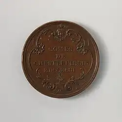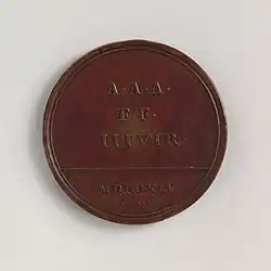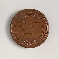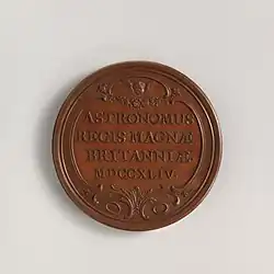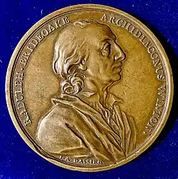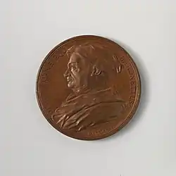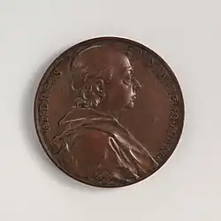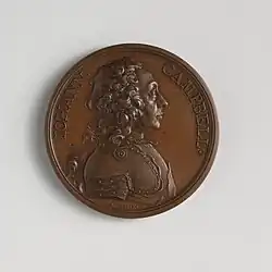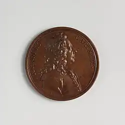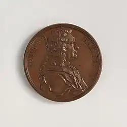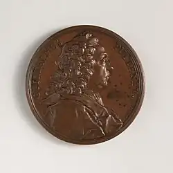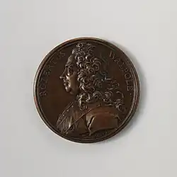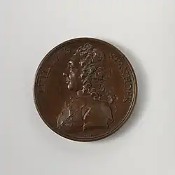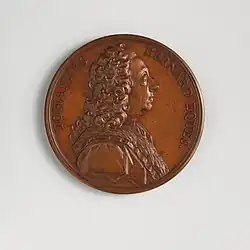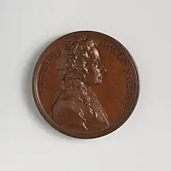 At the beginning of his time in England, Dassier printed proposals for making medals of 13 distinguished living Englishmen by subscription.[3] This series, with subjects largely from Whig political and Royal Society circles, was carried out 1740–1744.[4] The dies were engraved in London, then the medals were struck off at Geneva.[3]