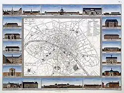 The development of Tenon's treatise took place in the context of public debate on what was to be done about the Hôtel-Dieu of Paris, an ancient hospital located in central Paris near Notre Dame. In the 18th century, the Hôtel-Dieu was notoriously overcrowded, unsanitary, and susceptible to fire. It was used almost exclusively by destitute patients who had no other options. It had a reputation of being a "death-trap"[7] because of its sordid conditions and high death rate. Two serious fires had occurred in 1737 and 1772.[7] The 1772 fire destroyed a large part of the Hôtel-Dieu and killed many patients. Public outrage at the loss of life sparked more systematic discussions of possible reforms to the hospital system in Paris.[8]