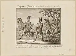 At the start of the French Revolution, Dugommier was one of the few planters in Guadeloupe who supported the revolutionary cause. They were opposed to the aristocratic planters, who controlled the colonial assembly and held influence over the governor of Guadeloupe. A long conflict then opposed the two camps.[5] In 1790, part of the troops of the Guadeloupe Regiment, led by Dugommier, participated in three expeditions in support of the revolutionaries of Martinique, but failed to overthrow the governor and the colonial assembly.[5] Dugommier left Guadeloupe definitively in July 1791, in order to represent the interests of the revolutionaries of the colonies in Paris, as a deputy to the National Convention.[2]