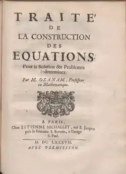 Jacques Ozanam (16 June 1640 – 3 April 1718) was a French mathematician.