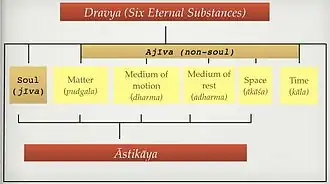 Chart showing the classification of dravya and astikaya