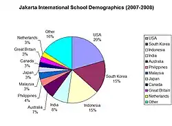 - ^ Jakarta Intercultural School Demographics 2007–2008 Archived 2011-10-08 at the Wayback Machine (PDF). JIS Alumni & Community Magazine, Spring 2008, pg.33. Retrieved on 2008-07-23.