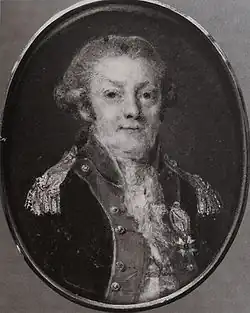 Sprengtporten received a generous pension of 30,000 riskdaler annually, and subsequently retired to a house in Djurgården. In retirement he remained a crotchety and cantankerous figure, but nevertheless received occasional visits from the king, who was genuinely grateful for his role in setting the Revolution of 1772 in motion.[13] As a gesture of his continuing respect for Sprengtporten, Gustav made him a knight of the Order of the Seraphim in 1778.[14]