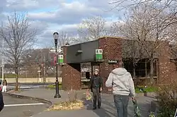 The Jamaica–Van Wyck station (/væn ˈwɪk/ van WIK)[4] is a station on the IND Archer Avenue Line of the New York City Subway, located on the west side of the Van Wyck Expressway between Metropolitan Avenue and 89th Avenue on the border of Jamaica[5] and Richmond Hill, Queens.[6][7] It is served by the E train at all times.