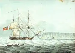 Captain Maude's next appointment was on 15 May 1824, to the Dartmouth, 42 guns, fitting out for the Jamaica station; where his boats, under the command of Lieutenant Henry Warde, captured two piratical vessels; one mounting a long 12-pounder on a pivot, and manned with about fifty well armed desperadoes, some of whom were killed, and twelve taken prisoners to Havannah.[7]