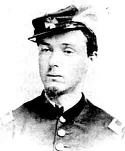 James B. Thompson (1843 – August 31, 1875) was an American soldier who fought in the American Civil War. Thompson received his country's highest award for bravery during combat, the Medal of Honor.[2] Thompson's medal was won for capturing the flag of the Confederate's 15th Georgia Infantry at the Battle of Gettysburg on July 3, 1863.[2] He was honored with the award on December 1, 1864.[3]