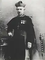 Born in London, England on 26 February 1846, he served as a military chaplain.[1] He was appointed the Vicar Apostolic of Gibraltar and Titular Bishop of Milevum by Pope Leo XIII on 16 February 1899.[2] His consecration to the Episcopate took place on 1 May 1899; the principal consecrator was the Right Reverend James Laird Patterson, Auxiliary Bishop of Westminster, with the Right Reverend Robert Brindle, Auxiliary Bishop of Westminster (later Bishop of Nottingham) and the Right Reverend Francis Bourne, Bishop of Southwark (later Cardinal-Archbishop of Westminster), serving as co-consecrators.[2]