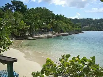 James Bond Beach sits on a small peninsula at Oracabessa Bay, approximately 10 miles or 16 kilometres from the Jamaican north coast town of Ocho Rios.[2]