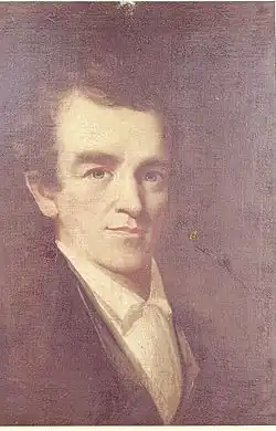 James Bowman was the earliest professional artist in Erie, Pennsylvania, painting there in 1817.[3] According to Elizabeth Kelly, he painted portraits of the "early Erie aristocracy" and "… the fact that all of these prominent people had their portraits painted by Bowman indicates that they felt a real need to preserve their likenesses for posterity. The fact that Bowman spent such a brief time in Erie, however, indicates that during the early 1800s, Erie had not yet advanced to a point where it could support a full-time portrait painter."[4] Bowman may also have visited Meadville, Pennsylvania seeking commissions near the same time.[5] An article in the Crawford Weekly Messenger for Thursday July 15, 1830, indicates that the "now celebrated Bowman" painted portraits in Meadville in 1816.[6] By 1822 Bowman was painting in the Washington, D.C., area. The biography reprinted from the Literary Cadet states how he hoped to become "patronized and protected by those guardians of the country—the members of congress…[2] That year he exhibited a Portrait of a Gentleman at the Pennsylvania Academy of the Fine Arts in Philadelphia[7] and painted a portrait of Edward Stabler, a Quaker and apothecary in Alexandria, Virginia. Through a wealthy contact in Alexandria Bowman may have gained patronage with citizens of that town, including William Cranch, a judge and cousin of John Quincy Adams, whose portrait he painted.
