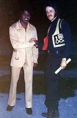 Brown with a disc-jockey after a concert in Tampa, 1972