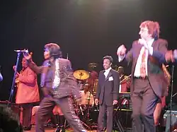 It was around this time as the musician's popularity increased that he acquired the nickname "Soul Brother No. 1", after failing to win the title "King of Soul" from Solomon Burke during a Chicago gig two years prior.[56] Brown's recordings during this period influenced musicians across the industry, most notably groups such as Sly and the Family Stone, Funkadelic, Charles Wright & the Watts 103rd Street Rhythm Band, Booker T. & the M.G.s as well as vocalists such as Edwin Starr, David Ruffin and Dennis Edwards from the Temptations, and Michael Jackson, who, throughout his career, cited Brown as his ultimate idol.[57]