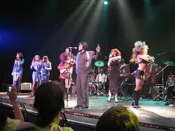 Brown began his career as a gospel singer in Toccoa, Georgia.[4] He rose to prominence in the mid-1950s as the lead singer of the Famous Flames, a rhythm and blues vocal group founded by Bobby Byrd.[5][6] With the hit ballads "Please, Please, Please" and "Try Me", Brown built a reputation as a dynamic live performer with the Famous Flames and his backing band, sometimes known as the James Brown Band or the James Brown Orchestra. His success peaked in the 1960s with the live album Live at the Apollo and hit singles such as "Papa's Got a Brand New Bag", "I Got You (I Feel Good)" and "It's a Man's Man's Man's World".