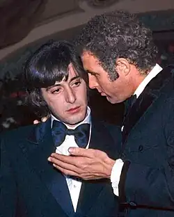 The following year, Coppola cast him as the short-tempered Sonny Corleone in The Godfather. Originally, Caan was cast as Michael Corleone (Sonny's youngest brother); both Coppola and Caan demanded that this role be played by Al Pacino, so Caan could play Sonny instead. Robert De Niro was also considered to play Sonny. Although another actor, Carmine Caridi, was already signed to play Sonny, the studio eventually insisted on having Caan,[46] so he remained in the production.[47] Caan was nominated for an Academy Award for Best Supporting Actor for his performance in the film,[48] along with co-stars Robert Duvall and Pacino.[49] Caan was closely identified with the role for years afterward: "They called me a wiseguy. I won Italian of the Year twice in New York, and I'm Jewish, not Italian.... I was denied in a country club once. Oh yeah, the guy sat in front of the board, and he says, 'No, no, he's a wiseguy, been downtown. He's a made guy.' I thought, What? Are you out of your mind?"[50]