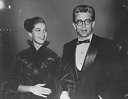 Some commentators, such as William Bast and Paul Alexander, believe the relationship was a mere publicity stunt.[72][73] In his autobiography, Elia Kazan, the director of East of Eden, dismissed the notion that Dean could possibly have had any success with women, although he remembered hearing Dean and Angeli loudly making love in Dean's dressing room.[74] Kazan was quoted by author Paul Donnelley as saying about Dean, "He always had uncertain relations with girlfriends."[75]