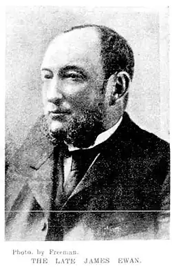 James Ewan J.P. (July 18, 1843 – August 1, 1903) was a Scottish-born Australian financier, mercantilist, and philanthropist. He held a number of high-profile financial positions, including being a long time partner in John Frazer and Co., Chairman of the Australia Steam Navigation Company, City Bank of Sydney, and the United Insurance Company. Ewan made considerable philanthropic donations to the Sydney Hospital, Benevolent Society, Presbyterian Church, the Women's Guild, and the Nepean Cottage Hospital (now known as the Nepean Hospital).[1]