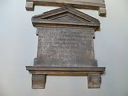 By 1743 Gibbs, who was fond of wine and food, was described as "corpulent".[28] In June 1749 Gibbs set out for the spa town of Aix-la-Chapelle for treatment: he long suffered from kidney stones and had lost weight and was in pain. He remained until September when he returned to London.[29] Gibbs never married.[30] He died in his London house on the corner of Wimpole Street and Henrietta Street on 5 August 1754 and was buried in St Marylebone Parish Church, and a modest wall tablet was erected with this inscription:[31][a]