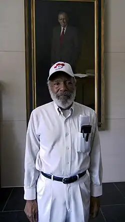 James Howard Meredith (born June 25, 1933) is an American civil rights activist, writer, political adviser, and United States Air Force veteran who became, in 1962, the first African-American student admitted to the racially segregated University of Mississippi after the intervention of the federal government (an event that was a flashpoint in the civil rights movement).[1] Inspired by President John F. Kennedy's inaugural address, Meredith decided to exercise his constitutional rights and apply to the University of Mississippi.[2] His goal was to put pressure on the Kennedy administration to enforce civil rights for African Americans.[2] The admission of Meredith ignited the Ole Miss riot of 1962 where Meredith's life was threatened and 31,000 American servicemen were required to quell the violence – the largest ever invocation of the Insurrection Act of 1807.[3]