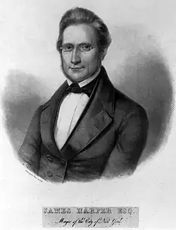 James Harper (April 13, 1795 – March 27, 1869) was an American publisher and politician. Along with his brother John, Harper formed publishing company J. & J. Harper (now Harper) in 1817. He incorporated his brothers Joseph and Fletcher into the company in 1825, changing its name to Harper & Brothers.