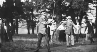 In May 1915 he emigrated to the United States and became the professional at the National Golf Links in Southampton, New York, and remained there until 1928.[10] Soon after arriving he played in the 1915 U.S. Open at Baltusrol Golf Club. He made the 36-hole cut but his name is not recorded amongst the 54-hole finishers.[11] He taught golf lessons for several winters at Wanamaker's department store in Manhattan where he worked for Sam Wanamaker.[2]