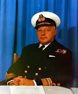 Vice-Admiral James 'Johnny' Johnson SSA SM DSC (10 February 1918 – 2 October 1990) was a former Chief of the South African Navy (1 April 1972 to 30 September 1977).[2] He was nicknamed "Flam" after his wartime red beard - "Vlambaard" in Afrikaans.[1]