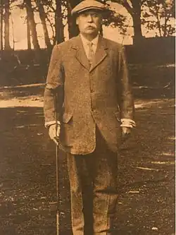 On 22 September 1900, Kay exacted a similar outcome on Braid, although at that time Braid hadn't yet recorded any of his five Open Championship victories. Vardon was the only member of the Great Triumvirate to actually get the better of Kay on his home course, when he won 6 and 5 on 8 September 1898.[2][12] In August 1898, Kay—in an Open Professional tournament at Earlsferry and Elie links—was second only to Vardon, then Open Champion, beating all other leading professionals including Braid, Taylor, Herd and Kirkaldy. But, eventually around the time of his Leeds Cup win, Kay exacted his revenge on Vardon in an exhibition match at Whitby, defeating Vardon by two holes in a 36-hole exhibition match.[13] Not that these money matches were played in anything but the spirit of friendly rivalry as can be detected by Vardon's comment in his 1905 book "The Complete Golfer" where he tells how advice from his friend James Kay of Seaton Carew helped him win the 1896 Open Championship.[14]