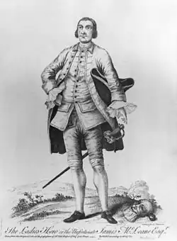 "Captain" James Maclaine (occasionally "Maclean", "MacLean", or "Maclane") (1724 – 3 October 1750) was an Irish man of a respectable presbyterian family who had a brief but notorious career as a mounted highwayman in London with his accomplice William Plunkett.[1][2] He was known as "The Gentleman Highwayman" as a result of his courteous behaviour during his robberies, and obtained a certain kind of celebrity.[3][4] Notoriously, he held up and robbed Horace Walpole at gunpoint: eventually he was hanged at Tyburn.[5][6]