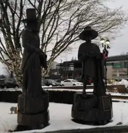 a Wooden Statue of McMillan and Chief Wattlekainen is located at the Innes Corners Plaza in Langley[9]