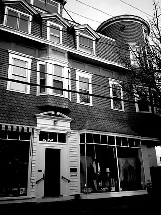 The American poet James Merrill and his partner David Jackson moved to the borough of Stonington, Connecticut, in 1954, purchasing a property at 107 Water Street.[3] It had once been a nineteenth-century residential and commercial structure that had first served as a drug store and a residence for the owner's family. Merrill spent summers in Stonington borough until his death in 1995. Village life and the apartment itself inspired some of his most important work, including The Changing Light at Sandover, his book-length epic poem based on Merrill's and Jackson's communications with the spirit world by means of a Ouija board in the turret dining room on the third floor.
