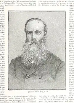- ^ a b c d e f Ingham, S.M. "Mirams, James (1839–1916)". Australian Dictionary of Biography. National Centre of Biography, Australian National University. ISBN 978-0-522-84459-7. ISSN 1833-7538. OCLC 70677943. Retrieved 27 December 2017.