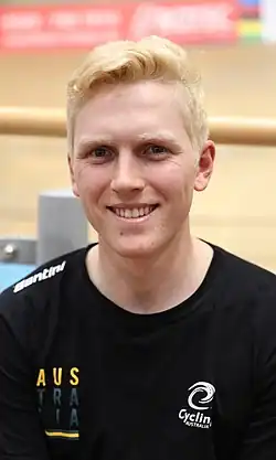 James Moriarty (born 7 June 2001) is an Australian road and track cyclist, who currently rides for UCI Continental team CCACHE x BODYWRAP.[3] He won a bronze medal in the team pursuit at the 2022 Commonwealth Games.