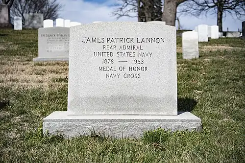 Lannon died on March 13, 1953 at the Bethesda Naval Hospital.[11] He is buried at Arlington National Cemetery.[4]