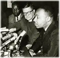 Pike with Martin Luther King Jr. at a press conference after the march to Selma, Alabama