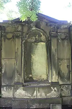 He retired in 1785. Infirm during the last few years of his life, Robertson died at Middlefield, Leith Walk, on 26 November 1795.[2] He is buried in St Cuthberts Churchyard at the west end of Princes Street. The grave lies on the main dividing wall immediately north of the church.