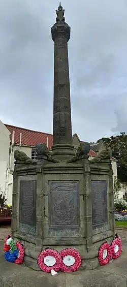 Richardson's architectural practise resumed in 1919, and the next year John Ross McKay, became a partner. McKay had studied at the School of Applied Art at the same time as Richardson, and had also worked in Lorimer's office.[4] Richardson's position as Inspector of Ancient Monuments became full-time in 1920, and in 1922 he became a part-time lecturer in the Edinburgh College of Art, which had assimilated the School of Applied Art. This left him little time for architectural work, and while Richardson remained a partner, and was able to attract clients through his official position, McKay did most of the practical work.[1] Post-war work by the practice included the North Berwick War Memorial (1920)[5]: 365  and the restoration of a fountain in Linlithgow Palace [5]: 297 .