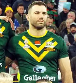 James Tedesco (born 8 January 1993), nicknamed "Teddy",[2] is a professional rugby league footballer who captains and plays as a fullback[3] for the Sydney Roosters in the NRL. A former Australia and New South Wales captain, Tedesco has been rated in the top 5 of the best rugby league fullbacks of all time.[4]