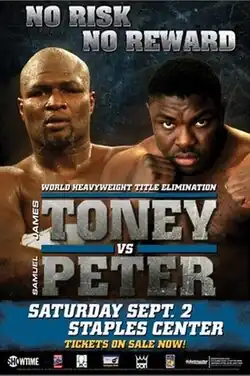 James Toney vs. Samuel Peter, billed as No Risk, No Reward, was a professional boxing match contested on September 2, 2006, for the NABF and IBA heavyweight titles.[1]