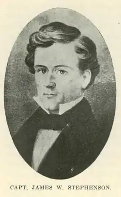 James W. Stephenson (1806–August 1838) was an American militia officer and politician from the state of Illinois. He was born in Virginia but spent most of his youth in Edwardsville, Illinois. In 1825 he was indicted for the murder of a family acquaintance, but never went to trial. Upon the outbreak of the Black Hawk War in 1832, Stephenson raised a company and saw combat, suffering severe wounds at the Battle of Waddams Grove. After the war ended Stephenson entered public life, and served as a member of the Illinois State Senate in 1834. In December 1837 Stephenson was nominated as the Democratic candidate for Governor of Illinois. Within six months of his nomination, accusations of embezzlement were leveled against him, and he was forced to withdraw from the election. In August 1838, Stephenson died at home of tuberculosis.