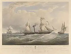 After sharing in the bombardment of Beirut and in the early operations of the Syrian War, he became attached, towards the close of 1840, to an expedition fitting for the exploration of the Niger, whither he sailed in 1841, as Mate, on board the Albert steamer under Captain Henry Dundas Trotter, one of the three small steamers sent to explore the Niger. Having ascended that river as far as Egga, a distance of 350 miles from the sea, he returned to Cape Coast Castle in September 1841.[3]
