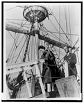 Queen Elizabeth II of the United Kingdom and her consort Prince Philip inspect the replica of Susan Constant at Jamestown Festival Park on October 16, 1957