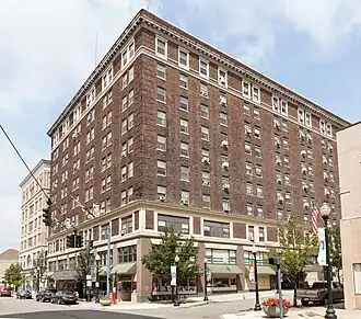 Jamestown Downtown Historic District is a national historic district located at Jamestown in Chautauqua County, New York. The district encompasses 103 contributing buildings in the central business district of Jamestown. The district developed between about 1873 and 1956, and includes buildings in a variety of architectural styles including Italianate, Gothic Revival, Second Empire, Romanesque Revival, Classical Revival, Renaissance Revival, and Art Deco. Located in the district is the separately listed Wellman Building. Other notable buildings include the Arcade Building (1898), Odd Fellows Lodge (1914), Bank of Jamestown (1918, 1924), Hotel Samuels (1910), Hotel Jamestown (1924), Chautauqua School of Nursing (1911), Jamestown Telephone Company (1930), Maddox Building (1933), First National Bank (1953), Pennsylvania Gas Company building (ca. 1955), Chautauqua National Bank (1956), Palace Theatre (now the Reg Lenna Center for the Arts, 1923), Allen's Opera House (now Lucille Ball Little Theatre, 1875), and the former Broadhead Worsted Mills (ca. 1870–1888).[2]